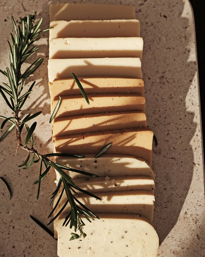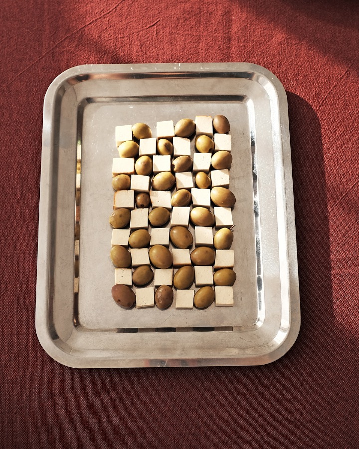 For the most “Instagram-worthy” platter of the evening, cut smoked tofu into uniform cubes and arrange them neatly with olives or other vegetables cut into matching shapes.