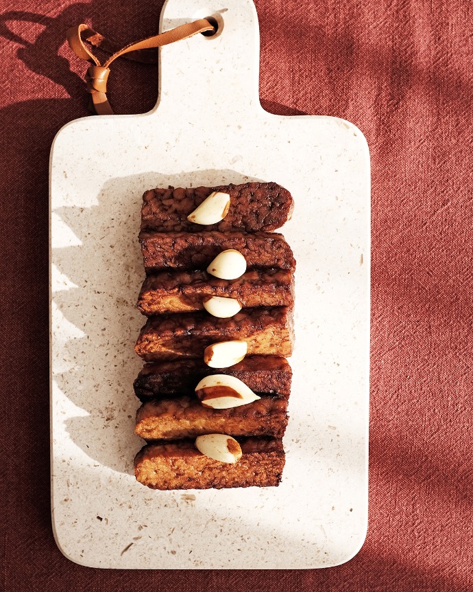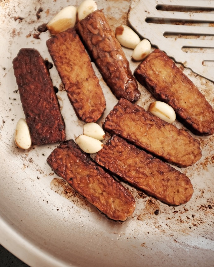 Marinate Tempeh in soy sauce, garlic, and thyme, then pan-fry until golden brown.