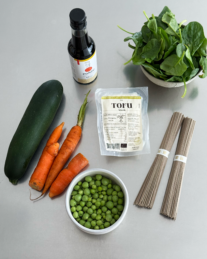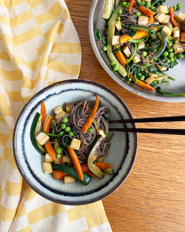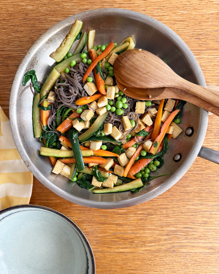 A quick spring dish that delivers everything you want from a weeknight meal: texture, freshness and deep umami flavor. Buckwheat soba noodles paired with crispy golden tofu and vibrant vegetables. Finished with ponzu (soy sauce with yuzu), which adds a subtle citrus brightness and ties everything together.